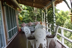 Ulumani - Treetops Rainforest New Bungalow: Single bedroom fully self contained eco-tourism bungalow. The New Bungalow has a large sweeping wrap around verandah area providing a perfect setting for relaxed forest, mountains, valleys and bay views. The bungalow blends seamlessly with the natural environment. Immerse yourself in the beauty of nature in one of the most carbon friendly environments possible. Amenities include shower cabinet, hotwater system, toilet, full kitchen facilities, and power.